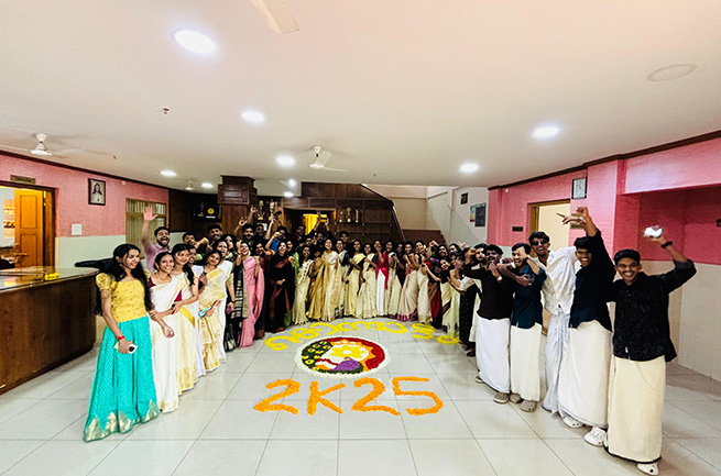 Girideepam Business School celebrated Onam with great enthusiasm and festive spirit on 27 August 2025. The campus was filled with joy and togetherness as faculty, staff, and MBA students came together to mark Kerala’s harvest festival.The celebration was graced by Rev. Dr. Varghese Kaipanadukka OIC, Former Head, Department of Education, Bethany Navajyothy Province, who was the Chief Guest of the occasion. In his inspiring Onam message, he emphasized the values of unity, culture, and community living that Onam represents, encouraging students to uphold these traditions in their personal and professional lives.As part of the festivities, the MBA students of GBS organized a variety of outdoor games and cultural programmes, showcasing their creativity, teamwork, and vibrant cultural spirit. The day reflected the essence of Onam—joy, inclusivity, and celebration of shared values.The event concluded with heartfelt camaraderie, leaving lasting memories for the GBS family.
