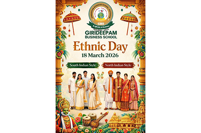 Girideepam Business School is all set to celebrate Ethnic Day 2026 on 18 March 2026, embracing the rich cultural diversity and traditions of India. The event aims to provide students with an opportunity to showcase and appreciate the beauty of ethnic wear while fostering a sense of unity and cultural pride.